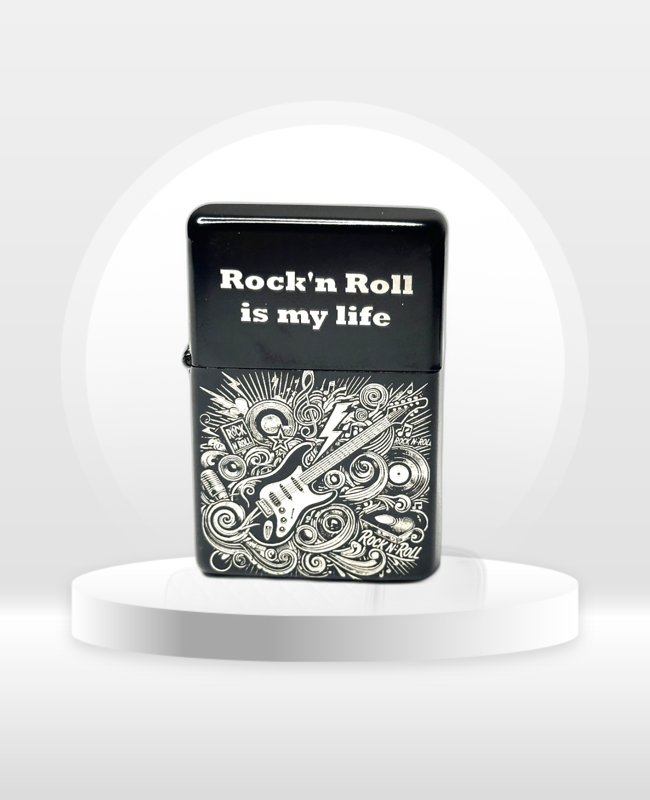 Bringen Sie den Spirit des Rock'n'Rolls überallhin mit dem "Rock'n Roll Life Flame" Benzinfeuerzeug! Dieses stilvolle Feuerzeug zeigt eine aufwendig gestaltete Gitarre, umgeben von energiegeladenen Mustern, die die Essenz der Rockmusik einfangen. Der prägnante Schriftzug „Rock'n Roll is my life“ macht klar, dass Rock für Sie mehr als nur Musik ist – es ist eine Lebenseinstellung.
