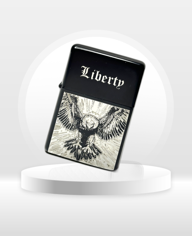 Erleben Sie den majestätischen Aufstieg in die Freiheit mit dem "Liberty Soaring Eagle" Benzinfeuerzeug! Dieses Feuerzeug zeigt einen prächtig gravierten Adler, der mit ausgebreiteten Schwingen durch die Lüfte gleitet – ein Symbol für Stärke, Unabhängigkeit und die grenzenlose Freiheit des Himmels. Der Schriftzug „Liberty“ verstärkt die Bedeutung dieses kraftvollen Designs, das für Freiheit und Entschlossenheit steht.