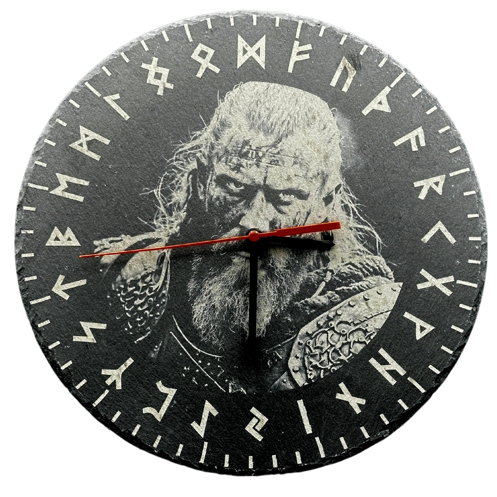 Begeben Sie sich auf eine Zeitreise in die Ära der Wikinger mit unserer Wanduhr "Björn der Wikinger". Diese Uhr aus echtem Naturschiefer bringt einen Hauch von rauem, historischem Charme in Ihr Zuhause oder Büro. Das digitale, lautlose Uhrwerk sorgt für ungestörte Ruhe, ideal für jeden Raum.