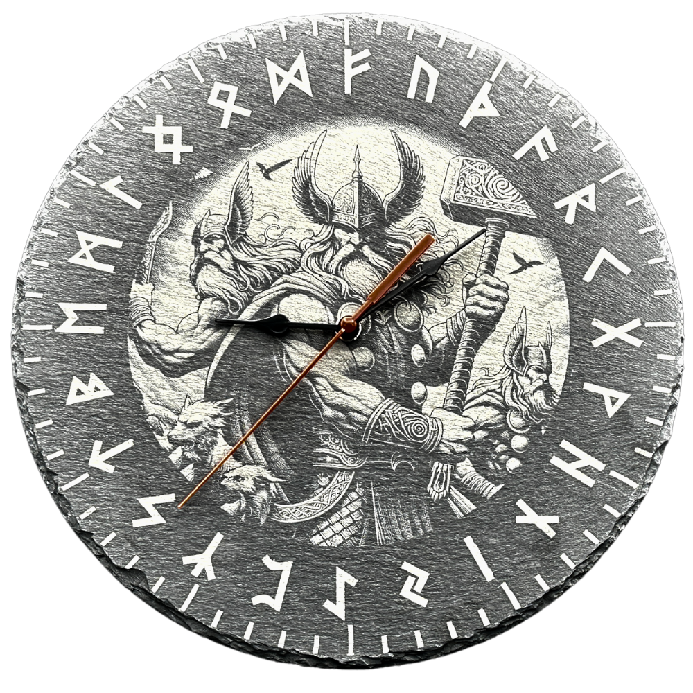 Thor und sein Hammer - Wanduhr aus Schiefer